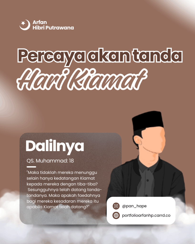 jadi saya membuat sebuah poster diniyyah atau lebih tepatnya poster dakwah yaitu mengenai percaya akan tanda hari kiamat frame nya itu make instagram post lalu ada illustrasi orang yang saya bikin make vector.Kalo bagus boleh dong bnatu subrek